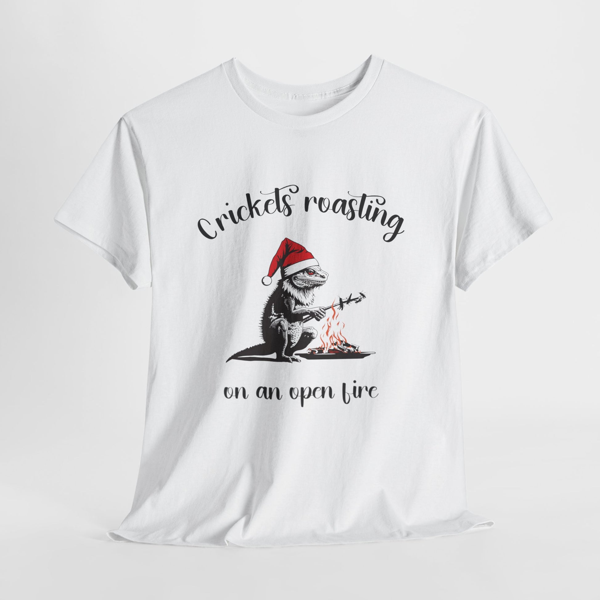Crickets Roasting Bearded Dragon Christmas Shirt Funny Reptile Lover Tee Cute Lizard Holiday Gift Beardie Pet Graphic TShirt