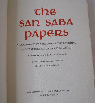 A rare 1959 hardcover edition of The San Saba Papers, published by John Howell Books. This historic volume documents the Spanish mission and presidio of San Sabá, an important site in Texas frontier history.