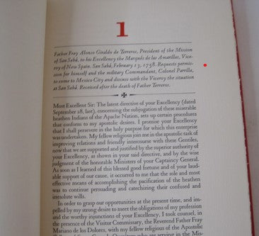 Included in this edition is the original fold-out 21×17 inch map, bound at the back of the book, offering a detailed view of the San Sabá region and its mission.