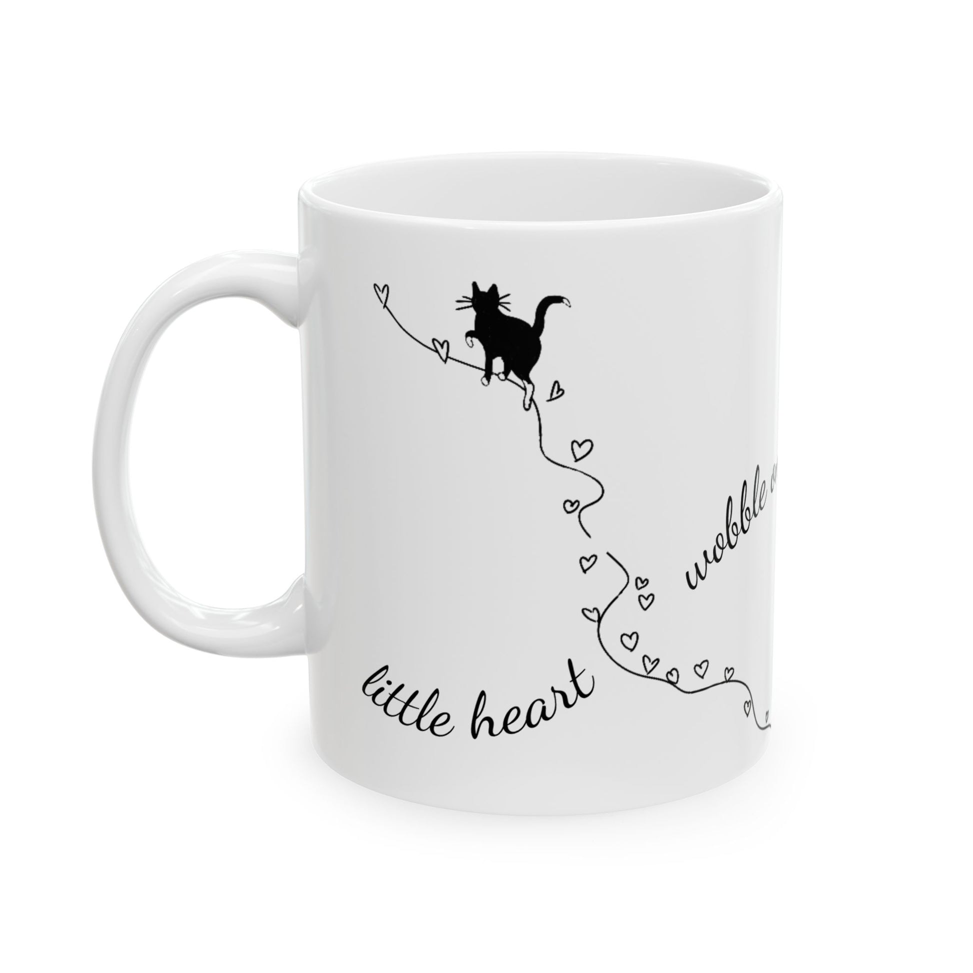 Wobbly Cat Awareness Mug - Print of Hand-Drawn Line Art, Cerebellar Hypoplasia Support, Minimalist Kitten Coffee Cup