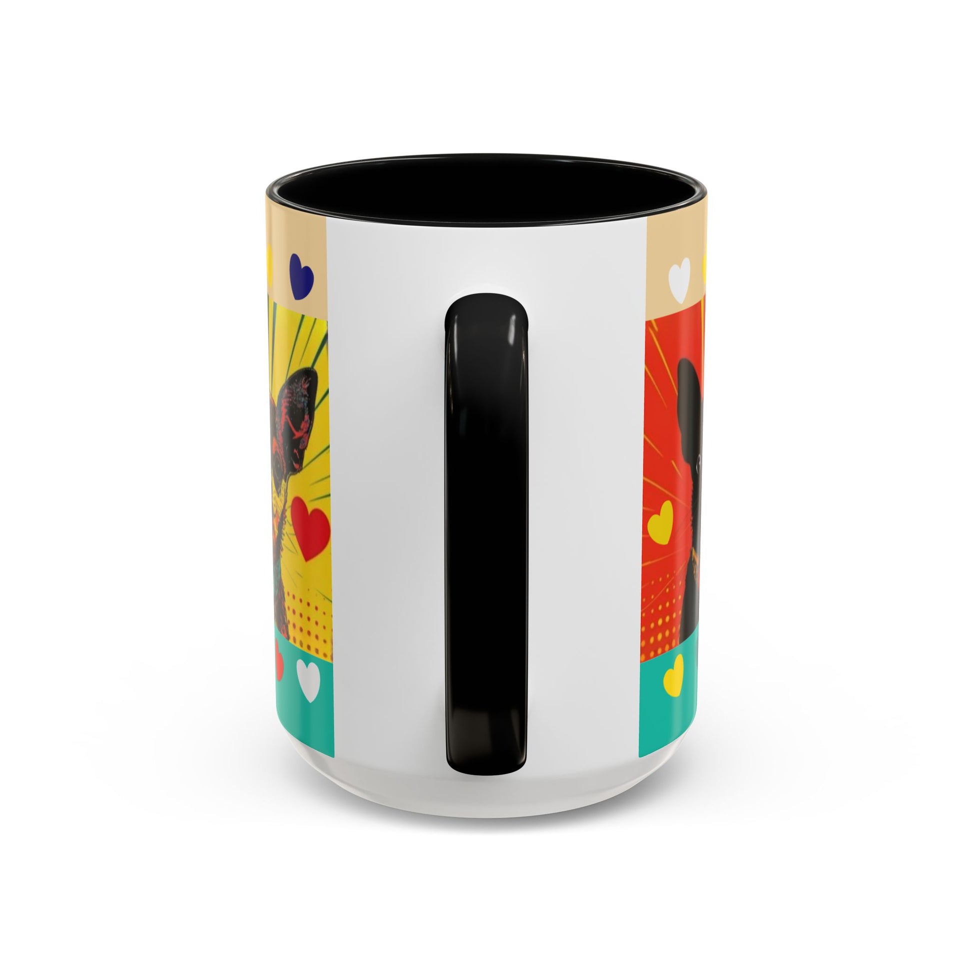 Bright, playful ceramic mug that celebrates Chihuahua love with a pop-art twist. The glossy white exterior is accented by a colorful interior and handle, while vivid, high-resolution printing wraps the cup with a cheerful design — hearts, bold panels, and a stylized Chihuahua portrait framed by the phrase “You had me at Chihuahua.”